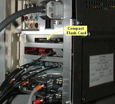 Current M400 and M39 controls share a common PC enclosure, similar to the one pictured at right. There is a black eject button next to the compact flash card. You press the eject button to free the card from the socket pins, then slide it the rest of the way out.
